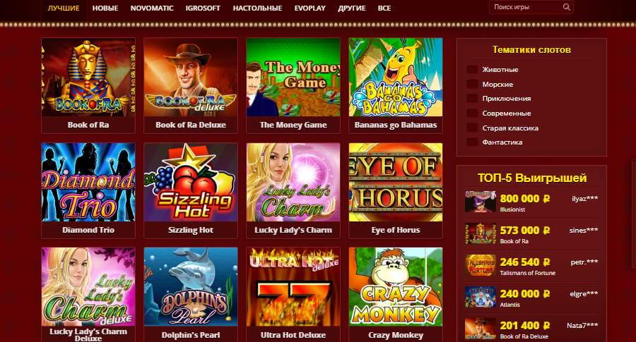 - Наличие игровых автоматов от Igrosoft