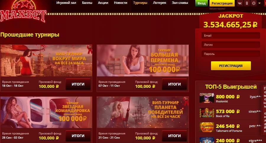 Когда писался настоящий обзор, клуб Максбет проводил турнир «Большая перемена» с фиксированным призовым фондом 100 000 рублей.